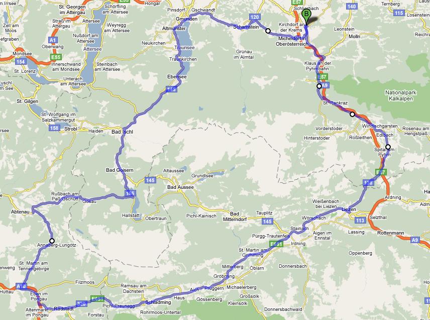driving the roadster on day 1: 0: ~ 40 km getting the car from the car dealer 1: ~ 270 km driving the "Salatovic Memorial Route" 2: ~ 35 km bringing my sister to her hair-cutter total distance that day: 345 km